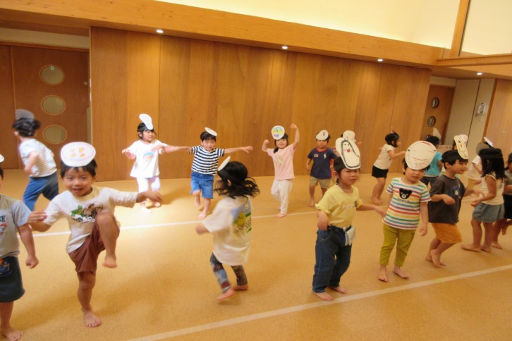 早速、お面を作ってダンスをすると、また1人の子が「今度運動会で踊るのはどう?」とみんなに提案。「いいね!じゃあこうやって(実際に動きながら)踊ってみる?」とアイディアがどんどん出てきました。