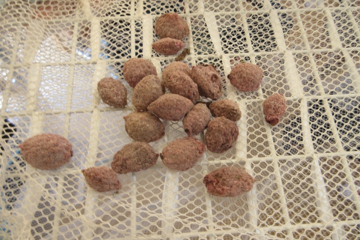 以前からぞう組でシソの葉に漬けていた梅干しは、緑色から赤色になりました。その後、天日干しして柔らかくなってくるかな?と様子を見ていましたが、なかなか柔らかくならず…。