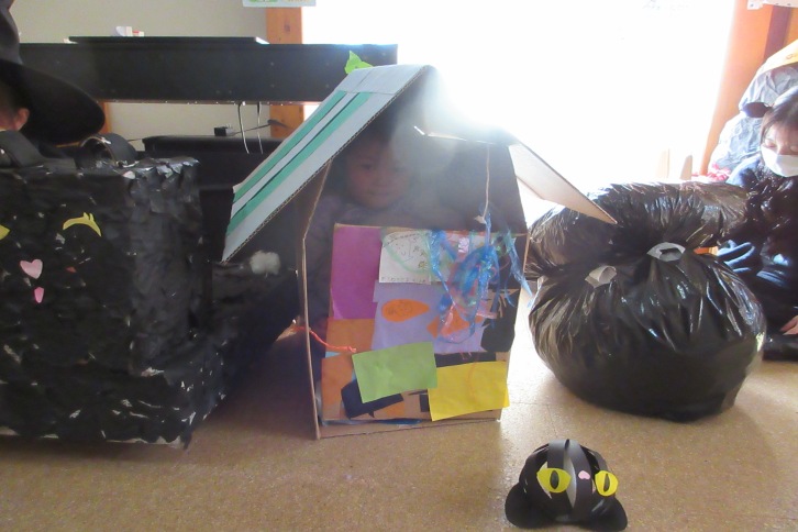 「ハロウィンにぞう組でお化け屋敷をしたい!」という子どもたちの思いから、椙山の教育学部の学生にも協力してもらいながらみんなでお化け屋敷作りに取り組んできました。