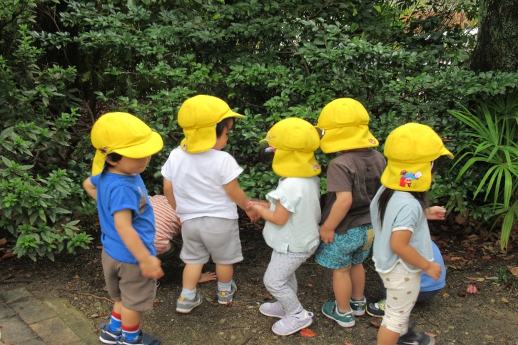 散歩が大好きな子ども達!「今日は散歩に行くよ」と保育者が言葉をかけると「やったー!どこにいくの?」と笑顔で話しかけてくれます。