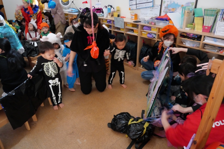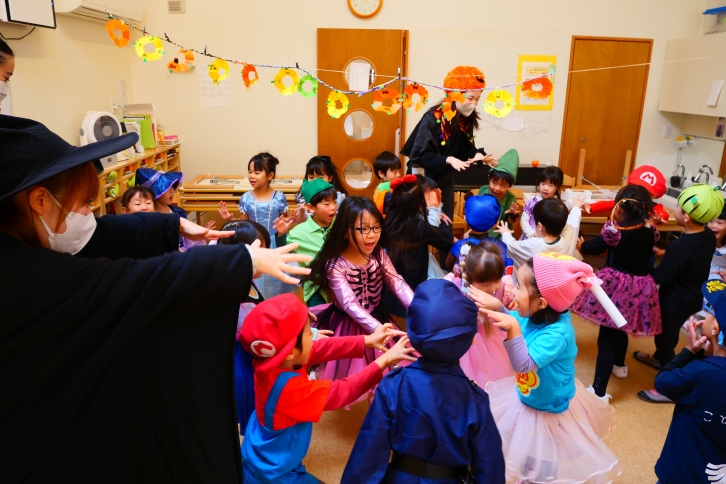 10月30日(木)、さまざまな仮装をした園児と保育者で賑やかな雰囲気の中、ハロウィンパーティーが開催されました。