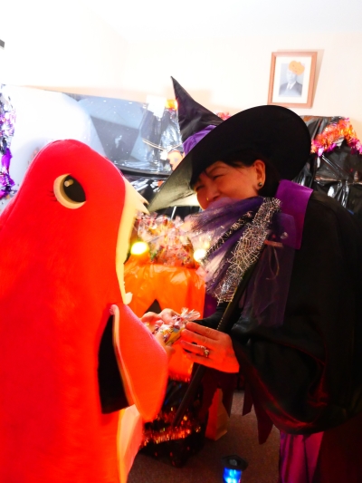 パーティーの締めくくりは、魔女の部屋を一人ずつ訪れ、「トリック・オア・トリート!」と合言葉を言い、魔女からお菓子を受け取りました。