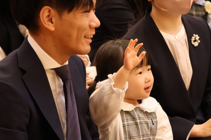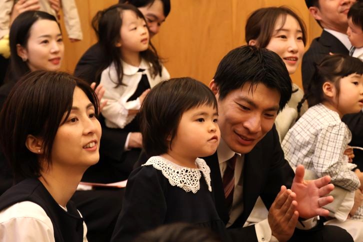4月4日(土)、令和8年度椙山女学園大学附属椙山こども園の入園式を行い、0歳児から年中組までの新入園児22名が保護者の方とともに参加しました。