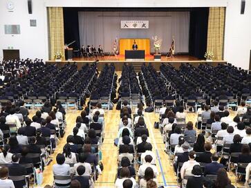 式典は、コロナ禍以降3年ぶりの椙山女学園の伝統である入学式でのフィルハーモニークラブによる『威風堂々』の演奏、昭和6年以降、毎日1日の始まりを知らせている金剛鐘の奏鳴が和風館(体育館)を厳かな雰囲気に包むなか開式。深谷和義校長による式辞では、「夢や実現したいことを見つけ、諦めず努力をしつづけてください」とメッセージを送り、新入生誓いの言葉では、代表の山末麻友香さんが「友人と支え合い刺激し合いながら、一生の宝物となる高校生活を送り、目標や夢の実現に向けて努力し成長し続ける人間になりたい」と力強く誓いました。