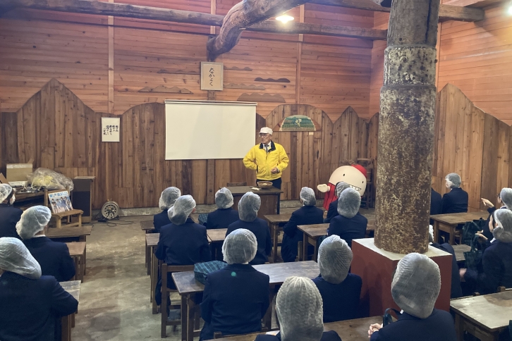 まず、木桶が並ぶ味噌蔵を見学し、社長の野田様より直接、食育に関する貴重な講義を受けました。