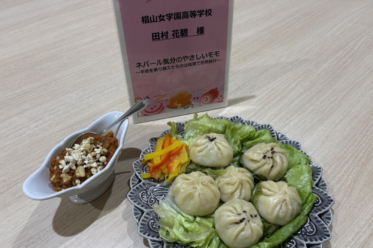 13回目を迎える今年の募集テーマ『笑顔を作る応援ごはん~料理で気持ちを伝えよう~』を踏まえ、出品作品の「ネパール気分のやさしいモモ ~手術を乗り越えたら次は味覚で世界旅行~」を完成させました。夏休みから準備を進め、何度も練習を重ねたオリジナルのレシピです。