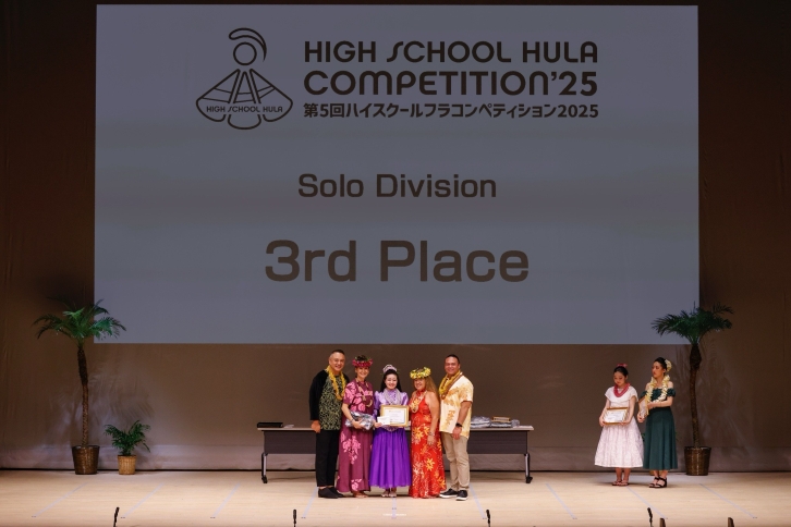 2025年8月2日(土)、「第5回ハイスクールフラコンペティション2025(HIGH SCHOOL HULA COMPETITION ’25)」(神奈川県横浜市)が開催され、ソロ部門に出場した田村花碧さんが、第3位を受賞しました。