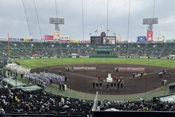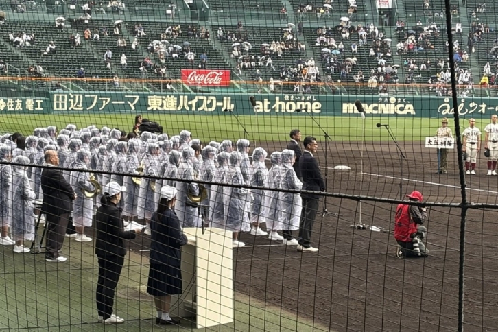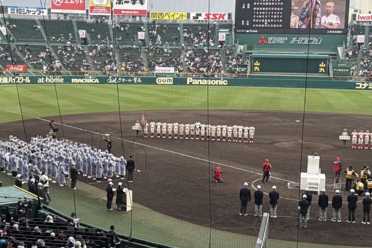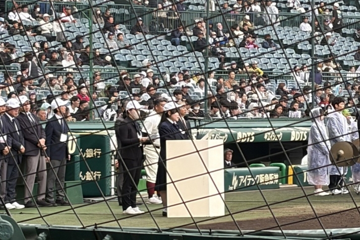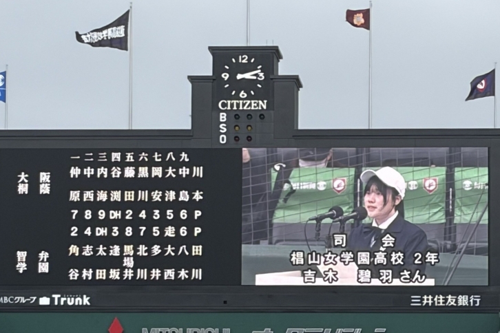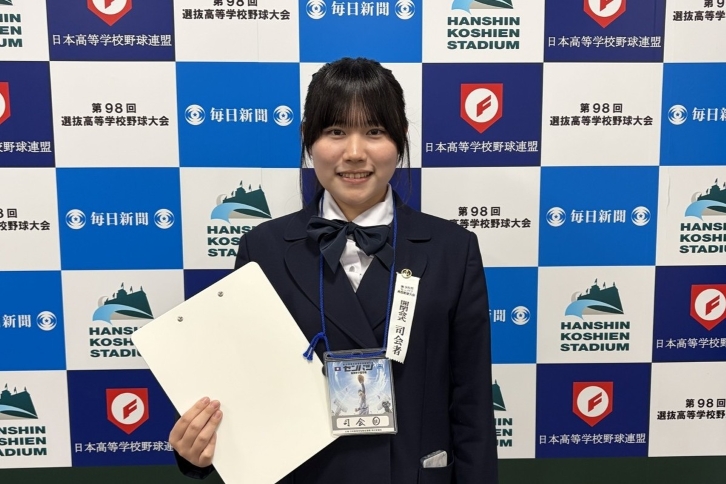 3月31日(火)、第98回選抜高校野球大会(主催:日本高校野球連盟・毎日新聞社 / 後援:朝日新聞社)の閉会式で、放送部の吉木碧羽さん(2年)が司会を務めました。