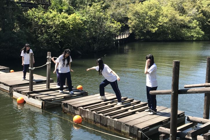 午後は各クラスが自分たちで企画・立案したレクリエーションを実施。また、フィールドアスレチックにも挑戦、楽しみながら楽しむ生徒たちの元気な声が、公園いっぱいに響き渡りました。