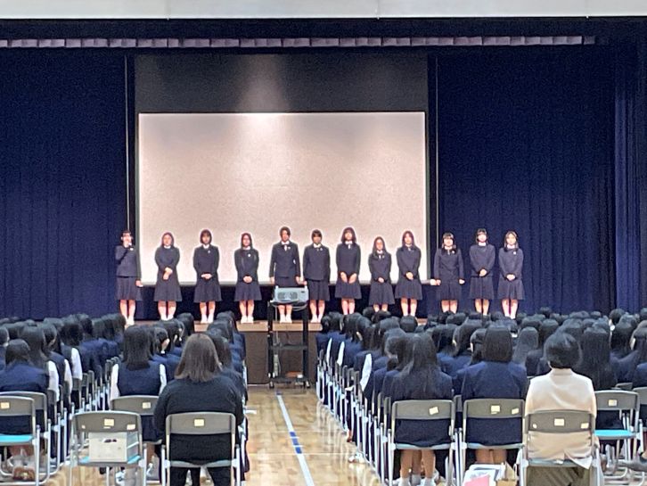 4月13日(月)、生徒会主催で、体育間にて、高校1年生向けにオリエンテーションを実施しました。新しく高校生活を始める1年生に、生徒会、学校行事、部活動の紹介、椙山生の日常生活の過ごし方などを、スライドや動画を使って紹介しました。