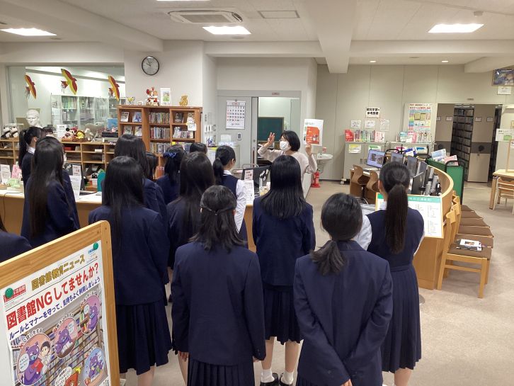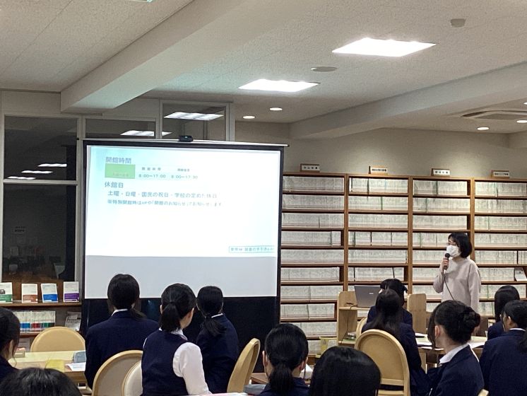 高校1年生を対象に、図書館にて司書による図書館オリエンテーションを行い、今回は主に、図書館の基本的な使い方を学びました。