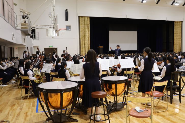 説明会は、フィルハーモニーオーケストラによる歓迎演奏で華やかにスタート。この春の選抜高校野球大会の閉会式の司会をつとめた放送部の吉木碧羽さんが進行を担当しました。