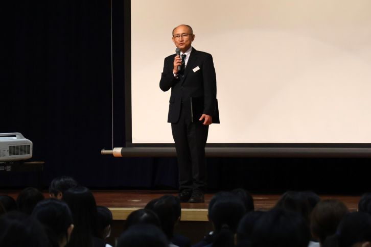 冒頭では、小島寿文校長が本校の教育方針について説明。主体性を大切にし、自分自身を磨きながら輝く生徒の存在こそが本校最大の魅力であること、また、椙山女学園中学校卒業生でミラノ・コルティナオリンピック(スノーボード)金メダリストの深田茉莉さんの活躍を例に、生徒一人ひとりの夢を大切にし、その第一歩を全力で応援する学校であることを語りました。