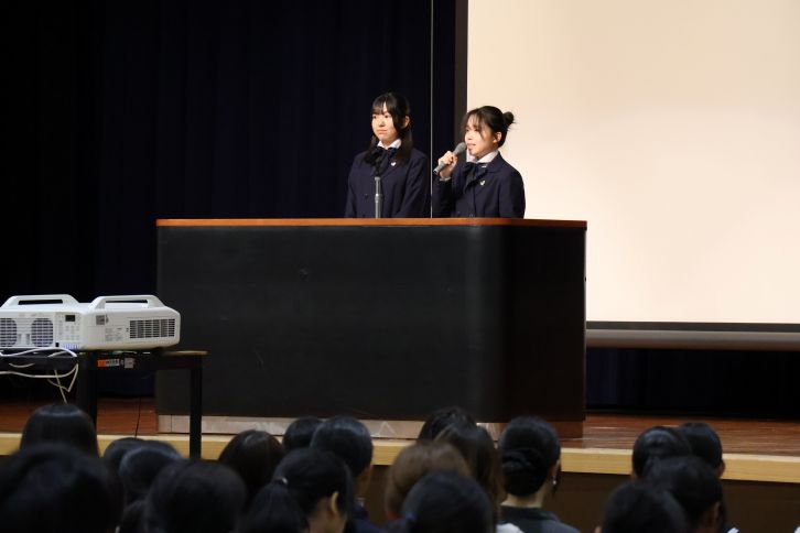 また、生徒会スピーチでは、会長の西部桃叶さんと副会長の伊藤かなでさんが登壇し、文化祭や球技大会といった生徒会行事に加え、37の多彩な部活動・同好会について紹介しました。行事や活動を通して培われる学校生活の充実ぶりや生徒同士のつながりについて、自身の言葉で語り、椙山で過ごす日々の魅力を率直に伝えました。