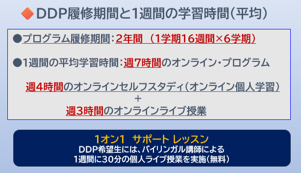 - DDP入学時に求められる英語力(CEFR B-1 レベル、英検2級相当)を最短16週間で養成するためのDDP入学準備コース。 修了生は、次学期のDDP本コースの入学が許可されます。
