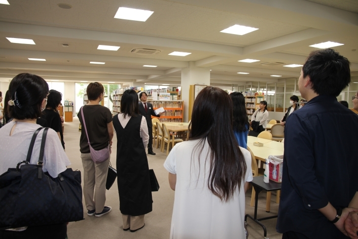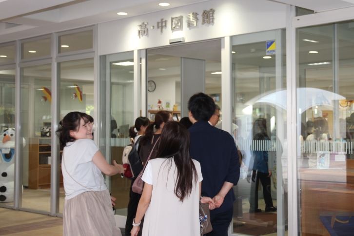 1部の学校説明会では、小島校長の挨拶を皮切りに、施設概要紹介、学校紹介と続きました。2部の授業見学では、中学1年生6クラスの実際の授業風景を見学。最後に、本校自慢の図書館を見学し、終了となりました。
