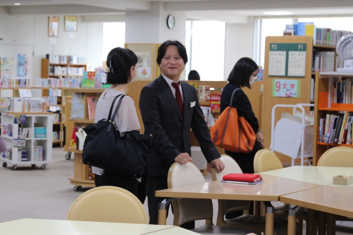 「一番の自慢は、生徒や教師といった『人』ですが、二番目の自慢は図書館です」と村上教頭が紹介するだけあり、さまざまなジャンルの蔵書が並ぶ図書館を紹介。