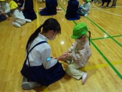 少子化が進む社会環境において、異年齢の子どもたちが一緒に遊ぶ機会は、非常に重要な意味があると考えています。本園では、建物の構造上、普段の生活の中で自然な関わりが持てるようになっていますが、より深い関係づくりのきっかけになるさまざまな活動を取り入れています。