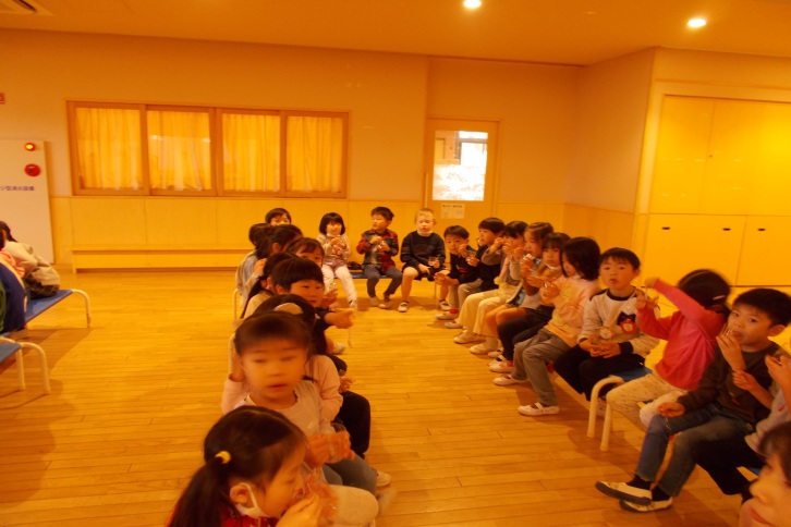 子どもたちは事前にゼリー交換チケットを作り、この日をとても楽しみにしていました。会場で、名阪食品さんのお姉さんにチケットを渡し、ゼリーを受け取ると、どの子も嬉しそうな表情で「ありがとう」とお礼を言っていました。