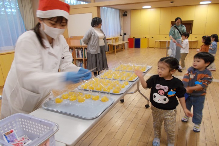 12月22日(月)2学期終業式の後で、給食業者名阪食品さんのご協力により、ゼリーパーティーを行いました。