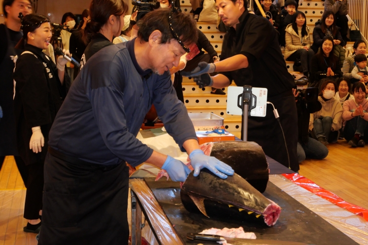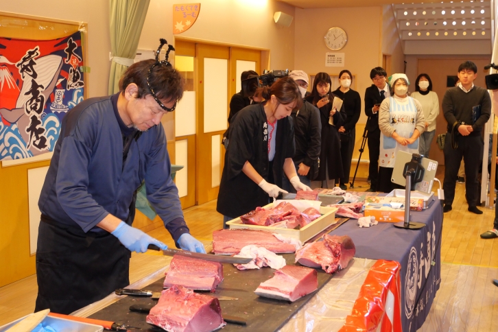 12月15日(月)、株式会社寿商店(名古屋市中区)の協力のもと「マグロの解体ショー」を開催しました。