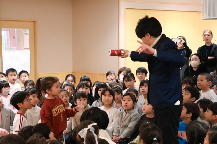 3月9日(月)、人気イリュージョニストDAIKIさんを招いたマジックショーを開催。間近での本格的なマジックや子どもたちの参加体験を通して、驚きと楽しさがあふれる時間となりました。