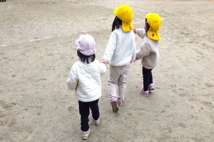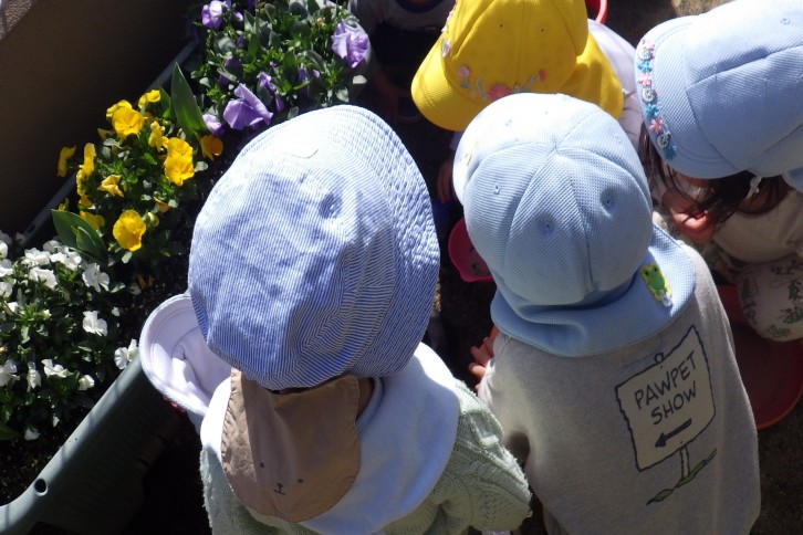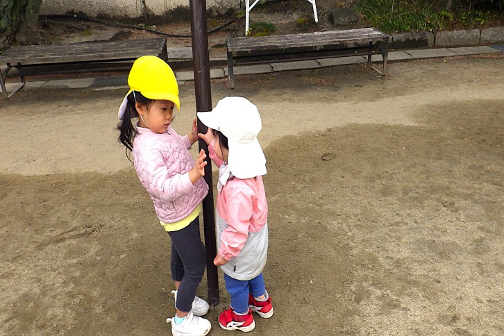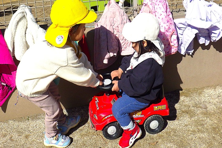 こうした関わりが安心して広がるよう、保育者は安全に配慮しながらそばで見守り、子どもの気持ちを代弁したり、年上の子ども達の優しい行動に言葉を添えたりすることで思いやりの気持ちが感じられるようにしています。春の自然の中で生まれる温かい関わりを大切にしながら、“興味が広がる力”や“人とのつながりを感じる力”をこれからも丁寧に育んでいきたいと思います。