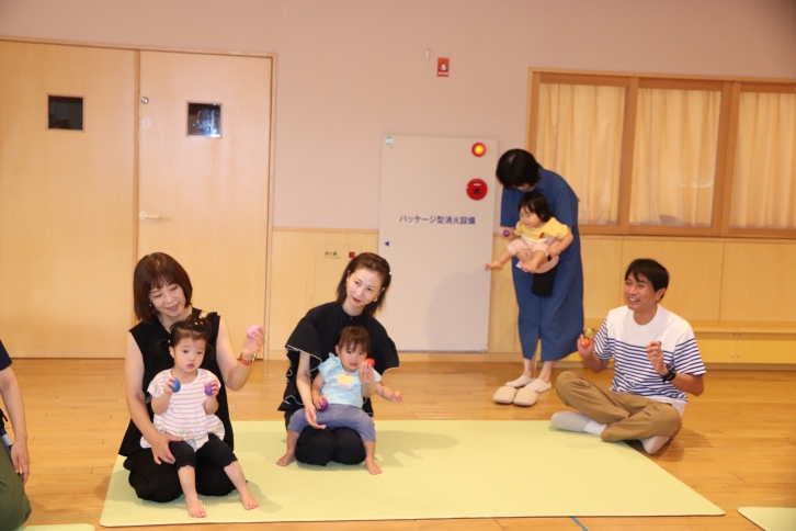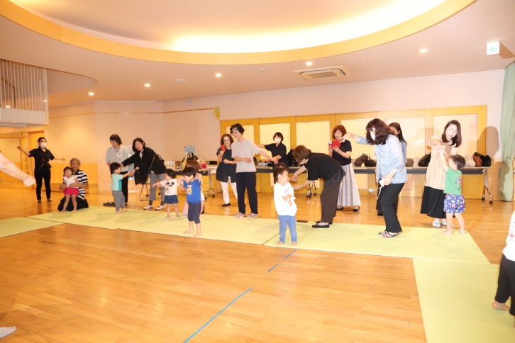 次に、ホールに移動し、歌や踊りを一緒に楽しみました。園児たちは、いつもと違う特別な時間にわくわくしながらも、大好きなおじいちゃんおばあちゃんと手をつなぎ、輪になって踊るなど、元気いっぱいの姿を見せてくれました。