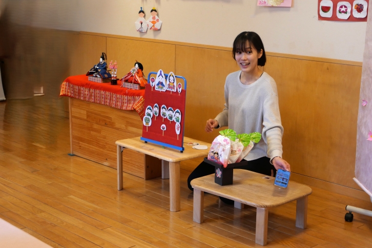 当日、先生にベープサートでひな祭りの話を聞き、保育室はやわらかな春の雰囲気に包まれました。