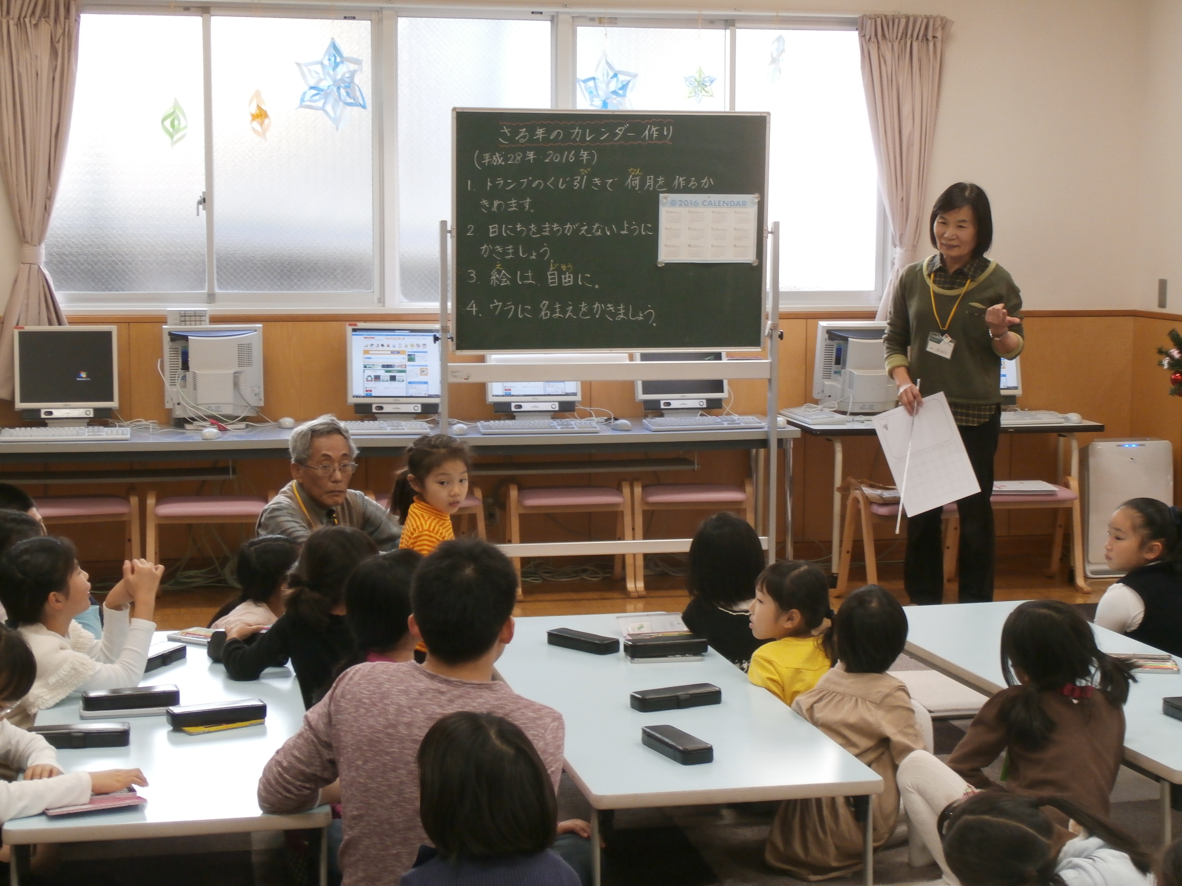 何月のカレンダーを作るかは、トランプを引いて決めました。月が決まった後は、数字を丁寧に記入してカレンダーを作り、それぞれにその月の気候や行事を考えながら一生懸命絵を書いて、仕上げました。みんなとても満足そうでした。
