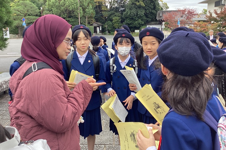 最終日には班別行動で外国人留学生の方と京都の街を巡り、国際交流を楽しみました。6年間の英語力を生かし、積極的にコミュニケーションをとっていました。