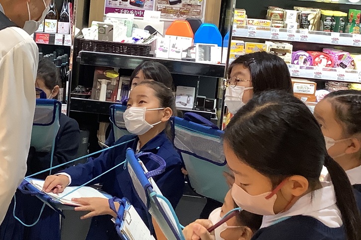 社会科「店ではたらく人」の学習で、スーパーマーケット『フランテ』に見学に出かけました。開店前に店内を見せていただいたり、普段は見られないバックヤードを見せていただいたりしました。また、フランテの方が、子どもたちの質問に丁寧に答えてくださり、学びを深めることができました。たくさんの発見をして、目を輝かせる子どもたちの様子が印象的でした。どの子にとっても、充実した時間となりました。