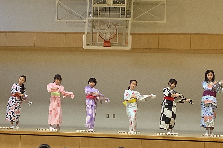 そして、舞台の上で「さくら」を披露し合いました。舞台の上で踊った後の子どもたちの笑顔が印象的でした。