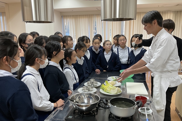 後半は、笠原氏の思い出の料理である「鶏つくね汁」を実際に調理している様子を見せていただき、美味しくいただくことができました。