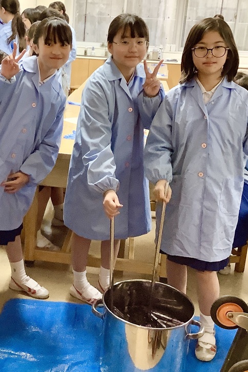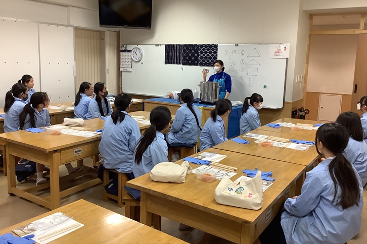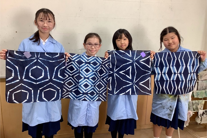 5年生が、伝統工芸「有松絞り」のワークショップを行いました。今回は、講師として有松からアトリエ「彩 Aya Irodori」の職人である大須賀彩さんをお招きしました。
