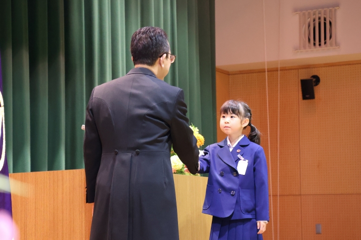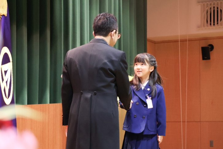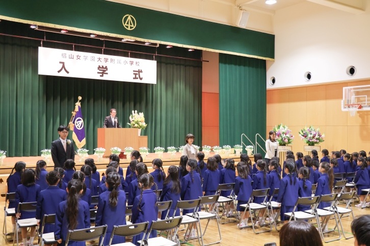 相川保敏校長の式辞では「みなさんは失敗したことはありますか?」と問いかけがあり、新入生から手が挙がると「それは椙山小学校ではとてもよいことです。失敗してもいいので、なにか新しいことにチャレンジしてみましょう」とエールを送りました。