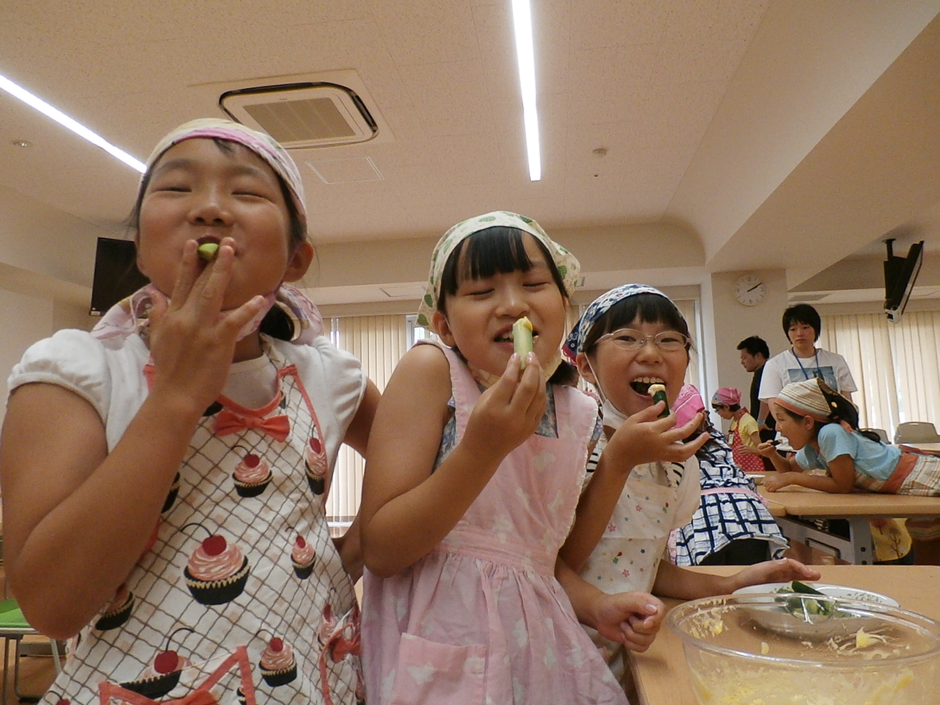 マヨネーズづくりのおかげで、きゅうりのおいしさが分かったと言う子が何人もいました。
