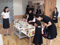 開会後には授業自由参観、施設見学です。参加者の皆さんは授業参観はもとより、4階人工芝グランドや5階ゴムチップ舗装グランドもご覧いただいたり、食育ブースのSATシステムで食事バランスを見てもらったりもしていました。小学校の雰囲気に親しんでいただけたようです。