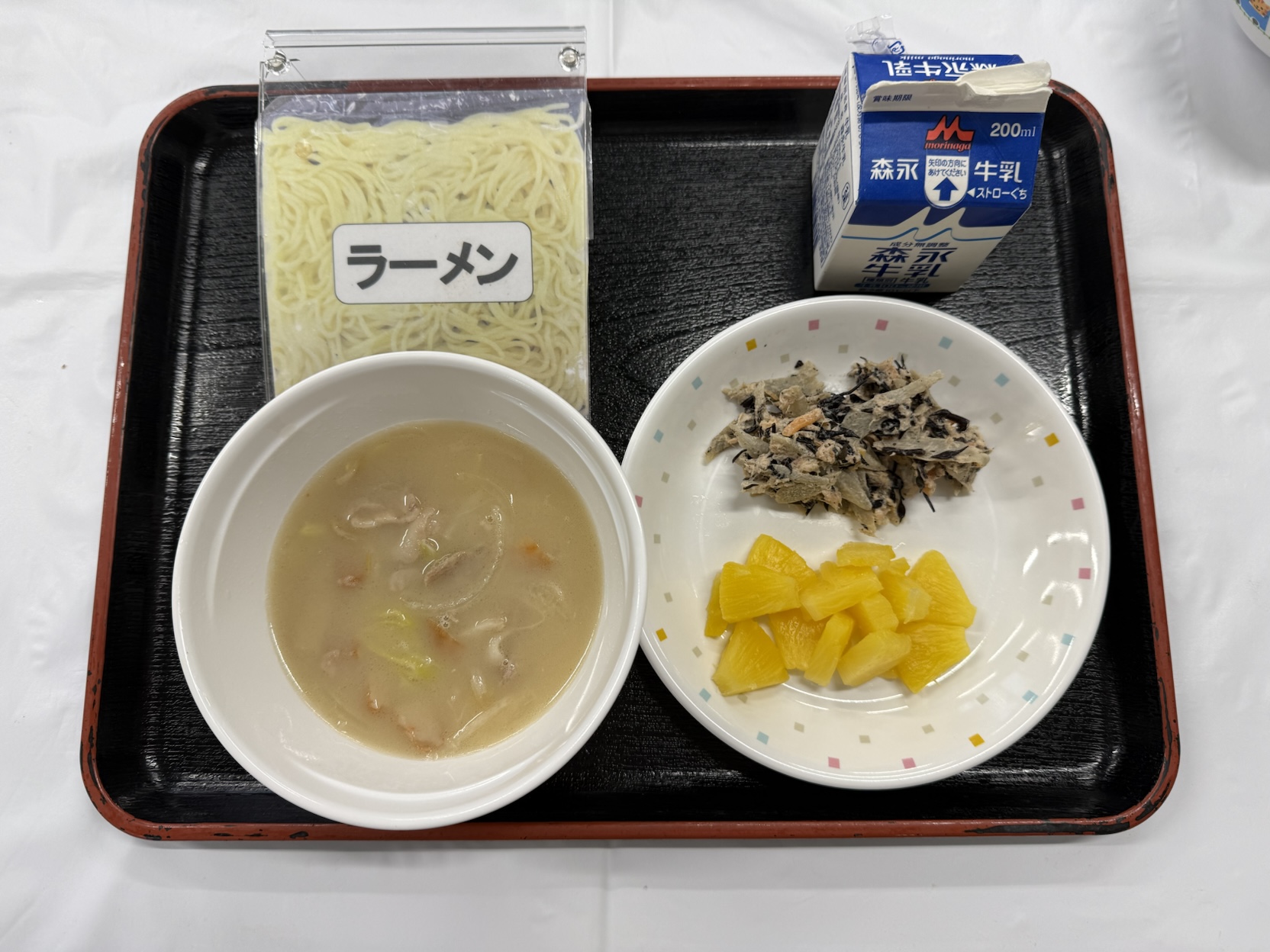 豚肉 野菜はんぺい ひじき ツナ 牛乳