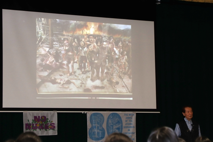 黒田氏は当時まだ6歳で、家族で住んでいた広島で被爆しました。幸い家族に負傷者は出ませんでしたが、幼いときに目にした爆心地から避難してくる大勢の人や原子爆弾によって破壊された街。また、比較的被害が少なかった自宅が近隣住民のための救護所になった時の様子などを静かな口調で話されました。