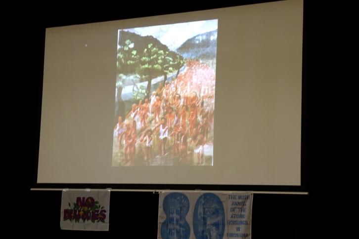 また、被爆後の被爆者に対する誤った認識と差別。広島平和記念公園の慰霊碑に刻まれている碑文「安らかに眠ってください過ちは繰り返しませぬから」についても触れられました。この碑文について「広島市民が謝っているようだ」と世間で話題になったとき、考案者から子どもだった黒田氏に碑文をどう思うか問われた際「広島市民が謝っているのではなく、全人類が誓っている」と答えたそうです。