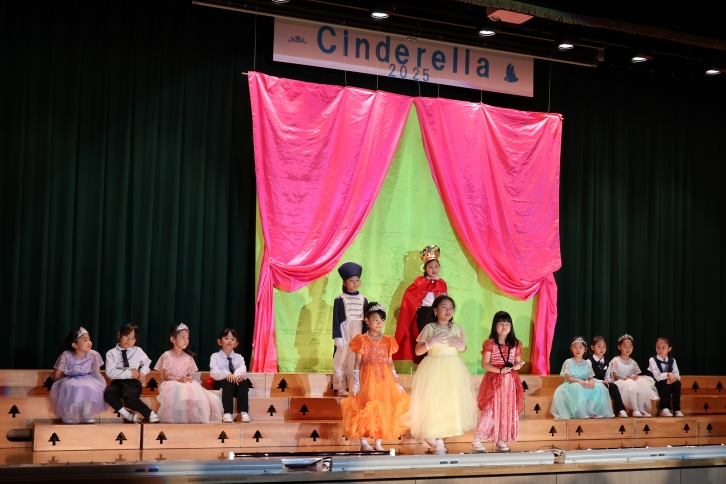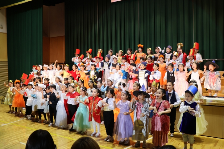 入学して半年、初めての発表会に緊張しながらも、全員で力を合わせて音楽劇「シンデレラ」を演じきりました。一人ひとりが役になりきり、物語の世界を楽しみながら表現する姿に、成長の一歩が感じられました。