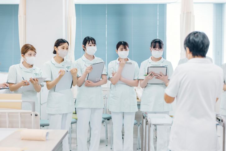 看護学科では、名古屋市内の基幹病院を中心に数多くの実習先を用意し、多様で豊富な臨床経験を通してあらゆる医療・看護現場に対応できる知識と技術、実践力を身に付けていきます。また、臨床経験豊富な教員陣による対話と指導を重視。現場が求める豊かな人間性と看護実践力を備えた、成長し続ける看護職者を育成します。