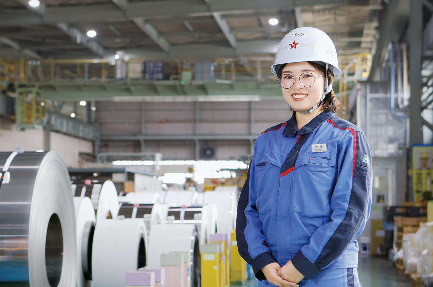 将来、人や社会に貢献できる仕事に就きたい。これは、私が大学入学前から一貫して抱いていた想いです。鋼の加工を行なっている今の会社での仕事は、主に溶鉱炉などの生産設備の設計補助。最近では、CADを使った設計業務にも慣れ、自分が関わった設備が会社を支えていることに誇りを感じています。理系出身の男性が多い職場で、常に意識していることは円滑なコミュニケーション。相手の立場に立って考えることで信頼関係を築き、正確で効率の良い業務遂行を目指しています。また、SDGsなどに関する活動では女性としての意見を求められることもあり、仕事の幅が広がっていることを実感。将来は製造部など、社会貢献を実感できる仕事に就きたいと思っています。