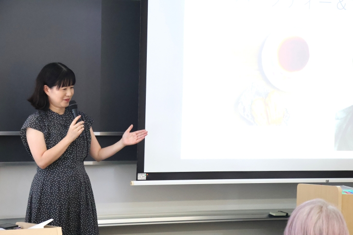 日本編の講義では、教育学部の高橋麻織准教授が「平安時代のお菓子」をテーマに、『枕草子』や『源氏物語』などに登場するお菓子について、ストーリーとともに紹介しました。