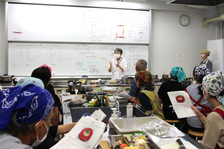 調理実習では加賀谷みえ子名誉教授の指導のもと、講義に登場したそれぞれの国の料理をつくり、食を楽しみました。参加した方からは「講義で学んだ料理を実際に作って食べることができ、楽しく学べる講座だった。」との感想が聞かれ、満足度の高い共催講座となりました。