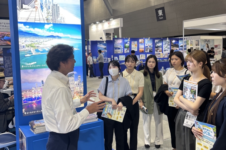 当日は、名古屋鉄道株式会社、株式会社名鉄ホテルホールディングス、クイーンズランド州政府観光局(オーストラリア)など国内外の出展者の方から、事業内容のほか、観光業界で働く魅力などについても説明を受けました。
