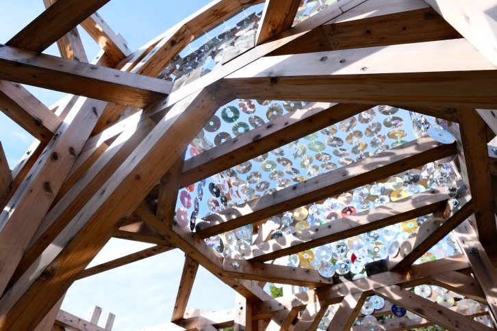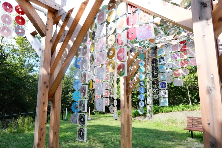 展示した「露珠の再生」は、廃棄CD約2000枚を使い、木の葉からこぼれ落ちる露を表現した作品です。
