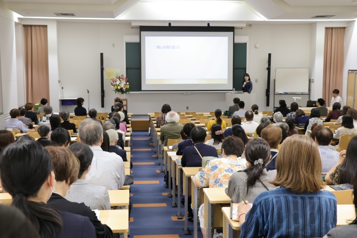はじめに黒田学長、板津直子大学同窓会長からご挨拶があり、続いて卒業生講演として、生活科学部卒業生の山本理江さん、文化情報学部卒業生の村瀬有佳子さんの講演会を実施しました。