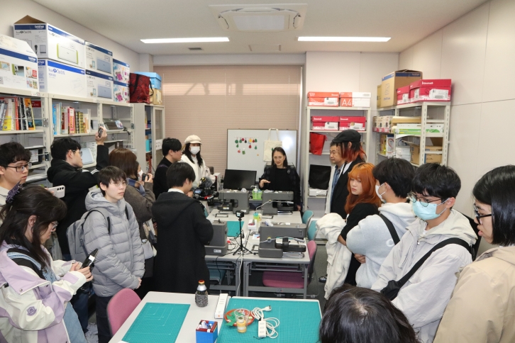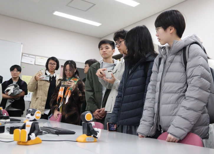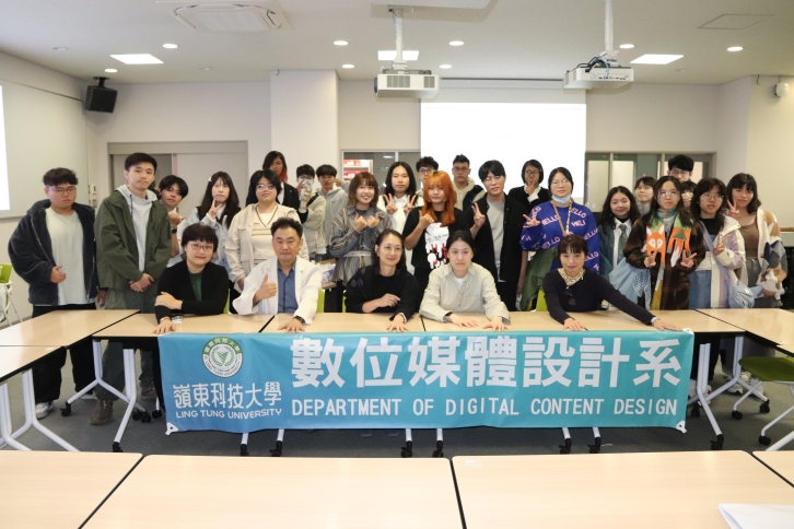 10月29日(水)、情報デザイン学科に、嶺東科技大學(台湾)の黄俊雄先生と陳子雲先生、そして学生23名が来訪しました。今回の訪問は、デジタル分野における国際的な教育交流を目的としたもので、本学の教育環境や学生の創作活動を体感する機会となりました。